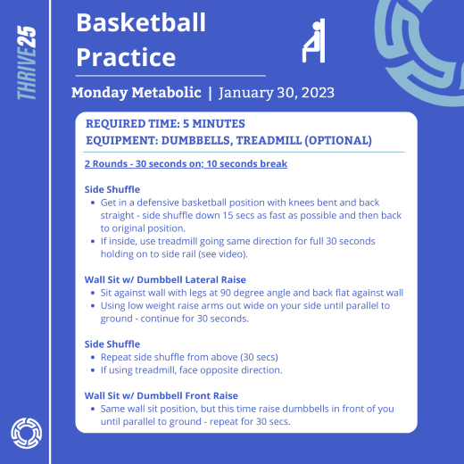 Taking you back to high school basketball practice. Get down in the defensive stance and side shuffle as fast as you can. Then do some wall sits while doing shoulder exercises - and then do it all over again.