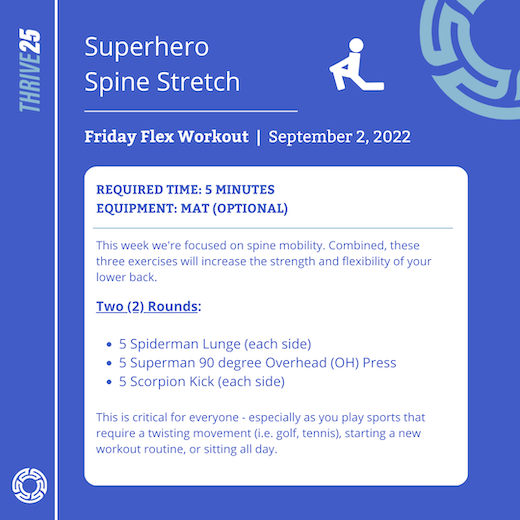 Today's Superhero Flex workout is all about spine mobility so that whether you're starting a new fitness program or sitting too much - you can be more confident you're guarding yourself against a back injury.