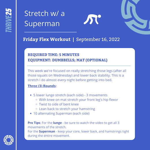 Did you do those squats on Wednesday (Issue #22)? Here’s a little stretch routine to get those legs feeling good going into the weekend!