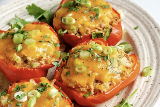 This healthy low-carb tuna-stuffed bell pepper recipe is packed with nutrient-dense veggies, probiotic-rich Greek yogurt, protein-forward tuna, and topped with melted cheddar for a savory finish. Ideal for a nutritious dinner or post-workout boost.