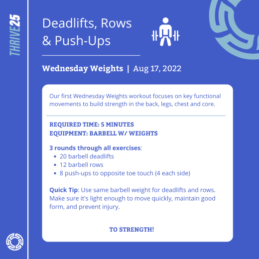 Check out our first Wednesday Weights Workout and Thrive25 Brain Puzzle!