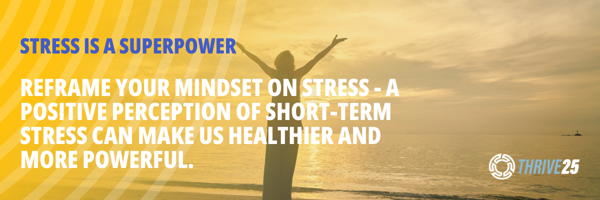 1. Change your mindset about stress - think about it as a way to turn you into a superhero. A study of college students showed that those with a positive perception about stress had lower heart rate and blood pressure compared to those that had a negative perception. The coolest part - it’s been proven that we can reframe our mindset to go from a negative to positive perception about stress.