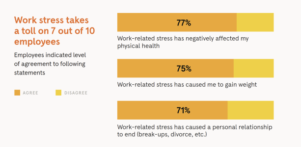 The percentage of employees who say the stress from work is having a negative affect on their physical health. (Headspace Report)