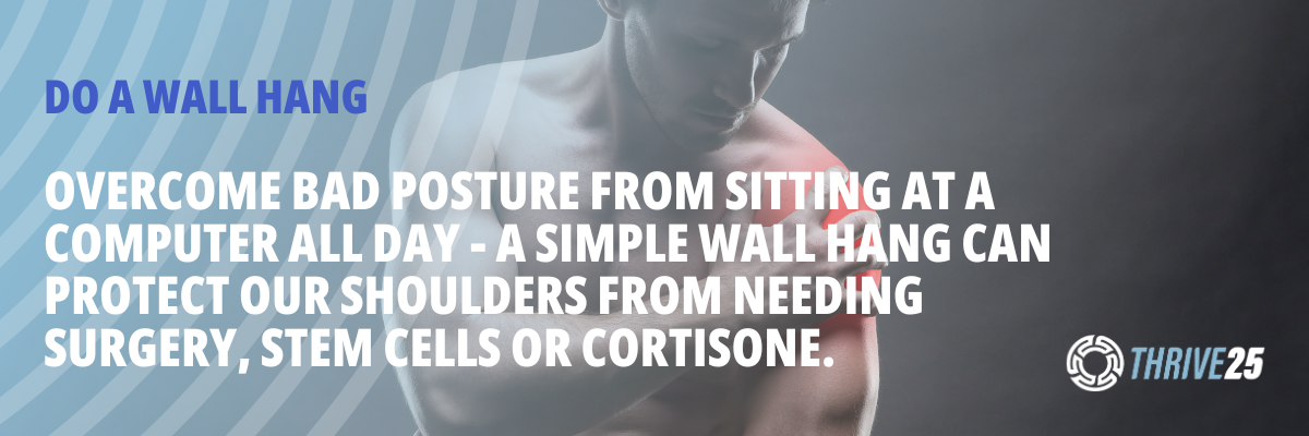 One easy exercise to prevent shoulder problems (and the need for stem cell therapy) that you can do anywhere - a Wall Hang.