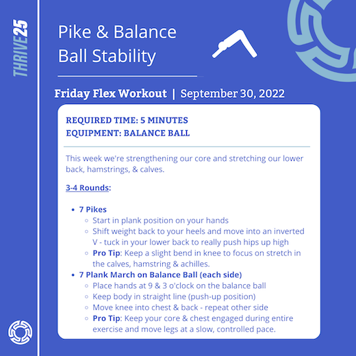Ahh - it's Friday. Here's a little workout to help with that six pack and to stretch it out. The pike (downward dog) is one of my go-to stretches for my lower back, hamstrings, and calves.