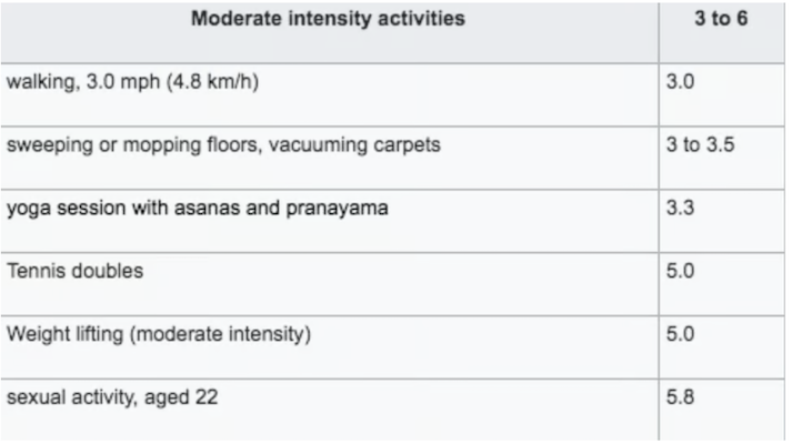 A MET* is the metabolic equivalent to sitting (basically doing nothing). That (doing nothing) would be 1.0 METs.