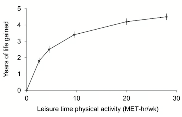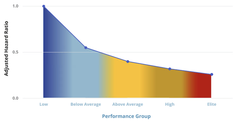 Even modest improvements - going from Low Fitness Level (bottom 25% percentile) to Below Average Fitness Level reduces all-cause mortality (hazard ratio) by 50%!