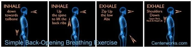 It’s a pretty simple exercise - take a deep inhale sending the air to your tailbone. Pay attention to your diaphragm expanding and pull your ribs up (not your shoulders) away from your hips.