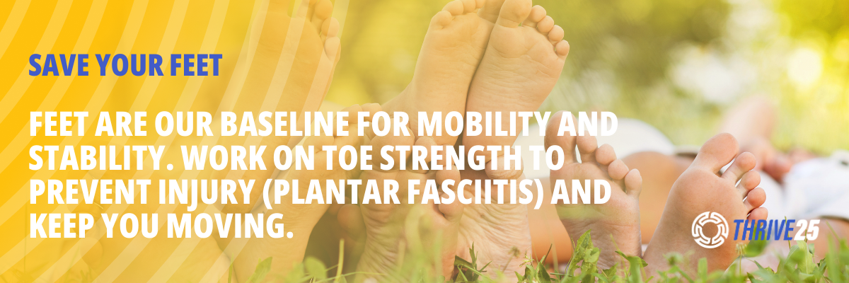 Similar to our other muscles - we lose 35% of our toe strength between ages 50-80 so it’s essential to boost up toe muscles now.