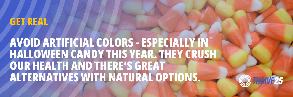 In general, avoid artificial dyes, colors (see this REPORT*), high-fructose corn-syrup, and anything with more than 8g of added sugar per serving (that’s being too generous - but it is Halloween).