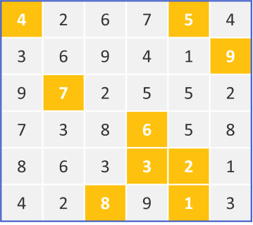 It’s kyoduku time! Kyudoku is a 6x6 grid where you need to use logic to find nine unique numbers (1 to 9) so that each row and column has a sum of 9 or less. The 8 highlighted in yellow is given.
