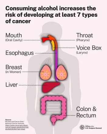 They call out 7 types of cancer associated with alcohol consumption.