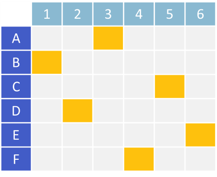 Let’s finish this with equation (3), C > F. We know F = {4,5} and A = 6, so C = 5 and F = 4. And if F = 4, then A = 3 and D = 2