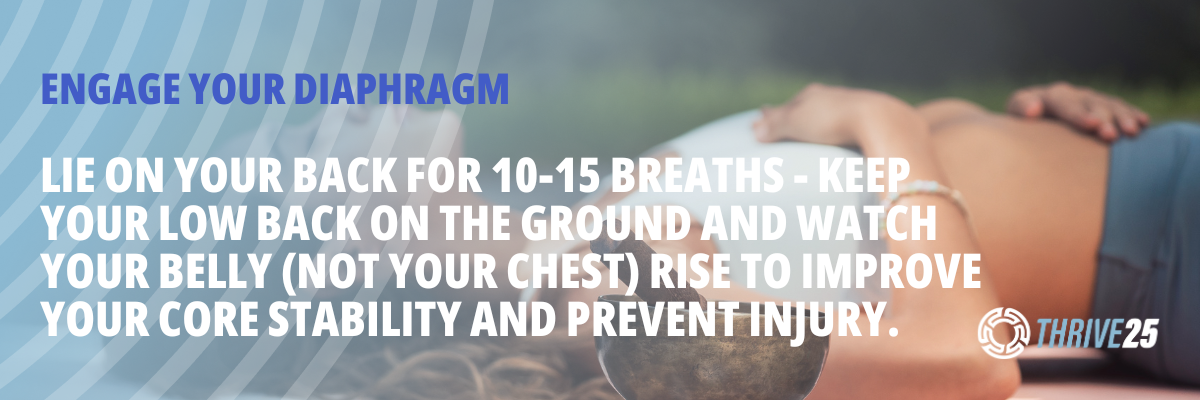 Try a 10-day challenge of doing 15-20 breaths while lying on the floor and your knees at a 90-degree angle. Keep your lower back on the ground and each breath try to get deep into your diaphragm so that your belly goes up, not your chest.