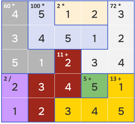 The objective is to fill in the grid with the correct digit in each cell, between 1 and 5: