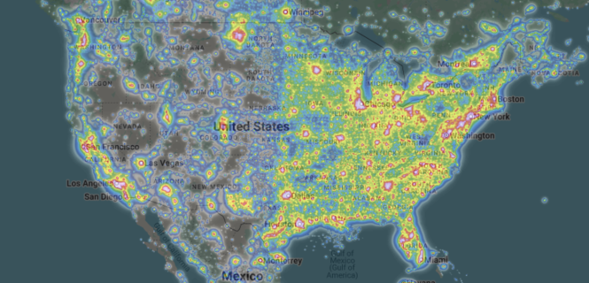 It’s pretty obvious from the map that if you want to really see the stars, then Oregon is a good place to start (light pollution in yellow and red).