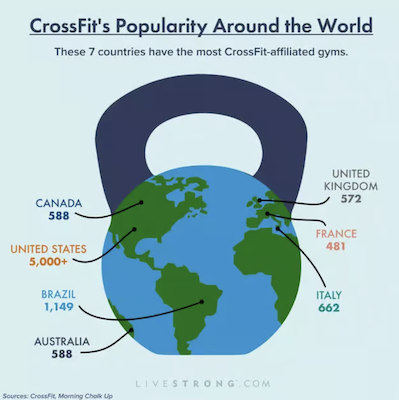 CrossFitters globally in 2022, up from 0 in 2000. The total number of affiliate gyms has grown from 13 in 2005 to 15,000 globally (now there are 13 in NOLA alone). Need to find a gym?