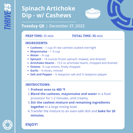 Tuesday QR: Spinach Artichoke Dip w/ Cashew