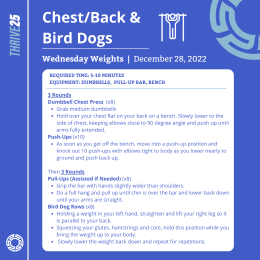 Upper body today - we've got a superset for your chest, then a superset for your back. Just 10 minutes and back to enjoying the week before New Years!