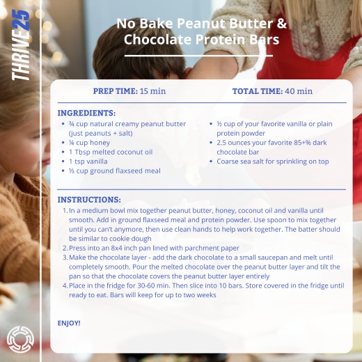 No Bake Chocolate and Peanut Butter Protein Bars (see Sweet Tooth)